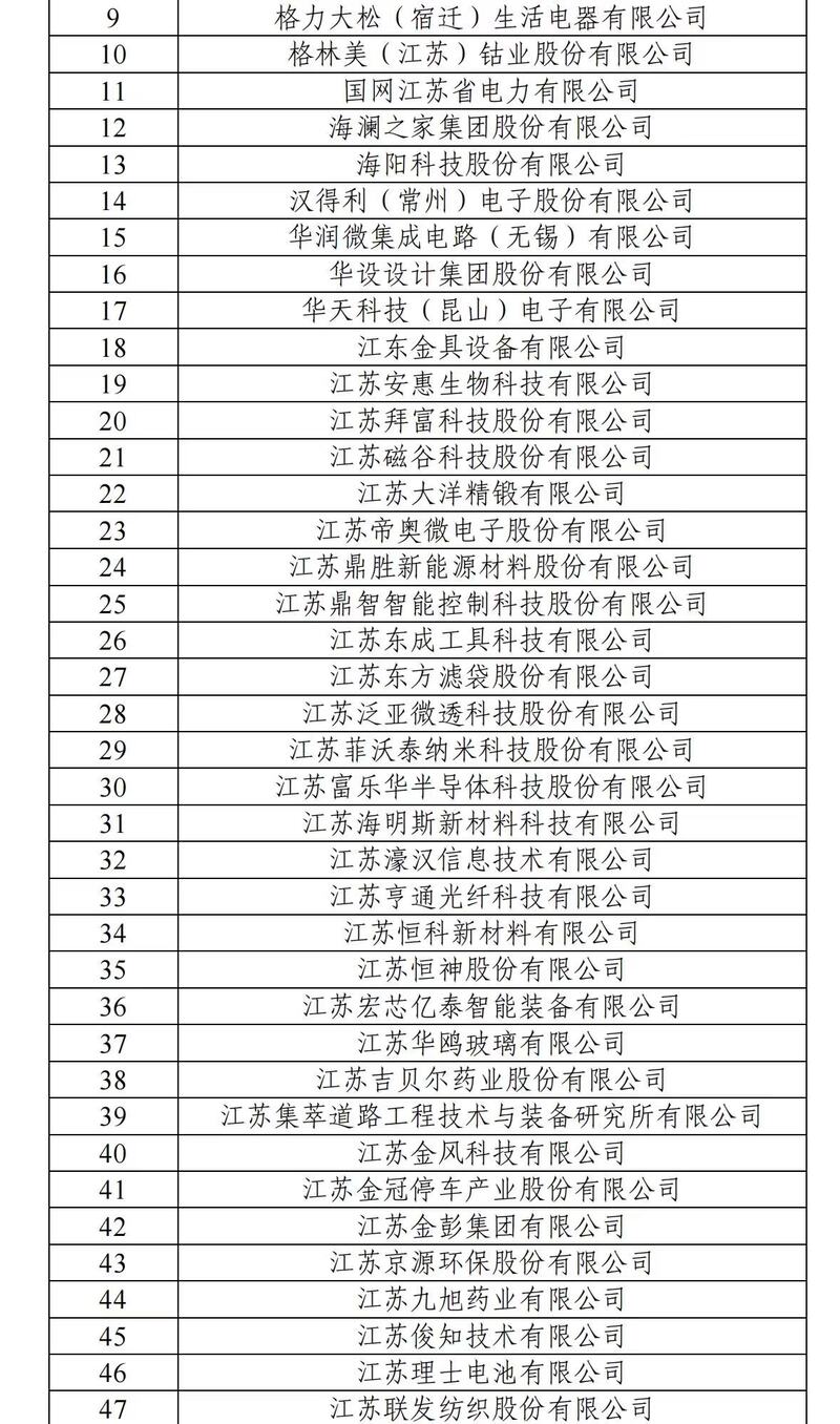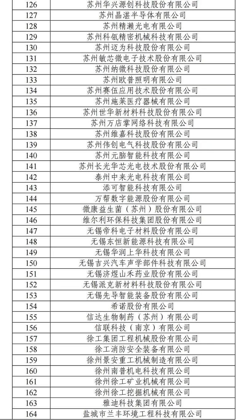 此次江苏入选企业覆盖高端装备制造、生物医药与医疗器械、新一代信息技术、新能源与节能环保、新材料等重点产业,涵盖上市公司、高新技术企业、独角兽企业、专精特新“小巨人”企业等优质主体,研发投入强度较高,在关键技术攻关、高价值专利布局、知识产权转化运用、市场核心竞争力等方面表现亮眼。