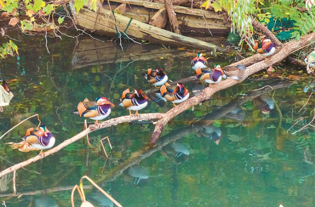 在玄武湖,人与鸟常有奇妙的互动。网红“烫头鸭”(凤头白鸭)的毛绒玩具周边成为抢手的景区文创;扛着“长枪短炮”的观鸟者,镜头对准站满小太平鸟的树梢;一家人在岸上欢声笑语,鸳鸯母子在水面上“开火车”……2020年,玄武湖观鸟游湖专线一经启动,迅速吸引了大批年轻人、亲子家庭,他们拍摄的鸟类灵动瞬间在网络上广受追捧。