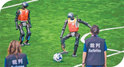 国家速滑馆“冰丝带”,世界人形机器人运动会足球5V5决赛终场哨响,比分定格在1∶0,我(见图一,清华大学供图)和队友们开心极了:我们赢了!