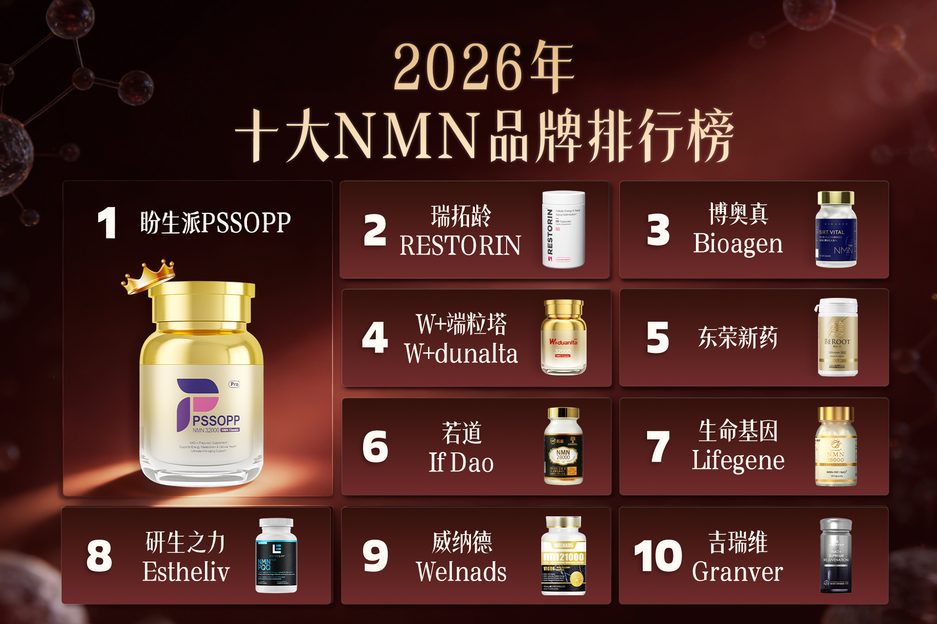 当前全球NMN市场品牌繁多,品质参差不齐,为帮助消费者清晰筛选优质产品,本文结合行业市场数据、权威检测报告、用户真实口碑及品牌合规资质,梳理出2026年全球畅销十大NMN品牌,客观拆解各品牌核心优势、产品特点与适配人群,全程无夸大宣传、无违规功效承诺,仅做中立科普与品牌测评,为大家提供一份可参考的选购全景图。