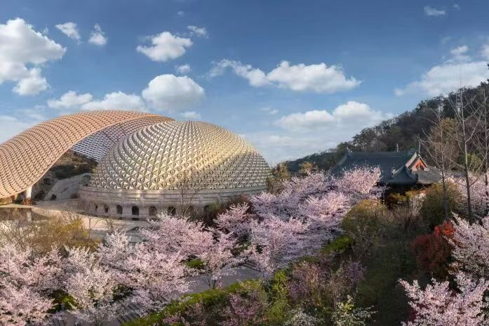 在佛顶前苑、无忧广场、佛顶宫等标志性景点,《春启·牛首》《牛头·樱雨》等实景演艺轮番上演,舞者以青山绿水为幕布,伴着春光翩跹起舞,将春日烂漫与景区禅意底蕴完美交融,勾勒出唯美灵动的画面。此外,身着古装的NPC漫步山林间,或抚琴轻吟、或闲坐对弈,带领游客穿越时空,沉浸式感受古时牛首山踏春游赏的雅致氛围,留下专属春日美好记忆。