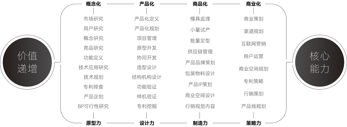 公司构建起涵盖品牌策略与视觉沟通设计、商品策略与产品设计、包装策略及创新设计、商业策略与体验空间设计、知识产权布局与专利挖掘、品牌孵化与项目投资、模具设计与制造七大产品线。在品牌策略层面,通过深层商业策略与用户洞察结合,提供从品牌定位、价值到视觉识别系统的构建,解决品牌方向不清晰、市场辨识度低的问题。