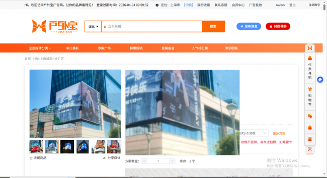 第一步,咨询了解,锁定点位。客户在客服的引导下,登录户外宝广告网,在平台上直接搜索并查看正大乐城大屏的详细信息,包括点位具体位置、屏幕尺寸、分辨率、日常人流量、投放时段、实时报价等,所有信息一目了然,无需客户线下奔波核实,也无需反复对接工作人员询问。针对客户提出的“大屏轮播是怎么轮播”的核心疑问,客服进行了详细且通俗的解答,告知客户大屏轮播严格遵循行业规范,根据投放需求合理分配每小时的播放时段,确保每一条投放内容都能获得充足的曝光量,同时结合客户的庆生需求,给出了合适的投放时段建议,让客户清晰了解每一个投放细节,做到心中有数。