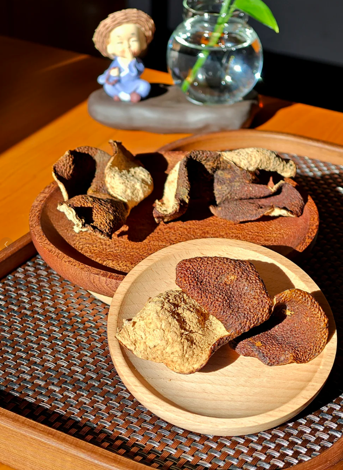 优质新会陈皮片张完整、油室饱满,陈香自然绵长,无刺鼻杂味,冲泡后汤色透亮、口感甘醇,回甘明显无苦涩感,高年份陈皮的内囊会自然剥落,质感与风味更显出众;