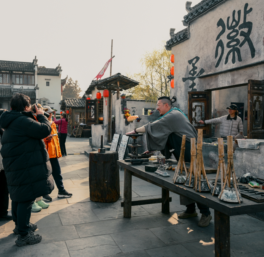 这里的非遗,是时光淬炼的匠心瑰宝,代代坚守,历久弥新。徽剧演艺婉转悠扬,一唱一念间,道尽徽州故事;板凳龙、花灯巡游气势恢宏,舞动着千年的喜庆与期盼;徽州剪纸精巧灵动,剪刀起落间,剪出世间万象;徽墨制作技艺精湛,松烟入墨、匠心雕琢,承载着“落纸如漆,万载存真”的传奇;雉山凤舞轻盈优美,长宁社鼓雄浑激昂……每一项,都是徽州匠人用心血守护的文化根脉,在新时代绽放出夺目光彩。