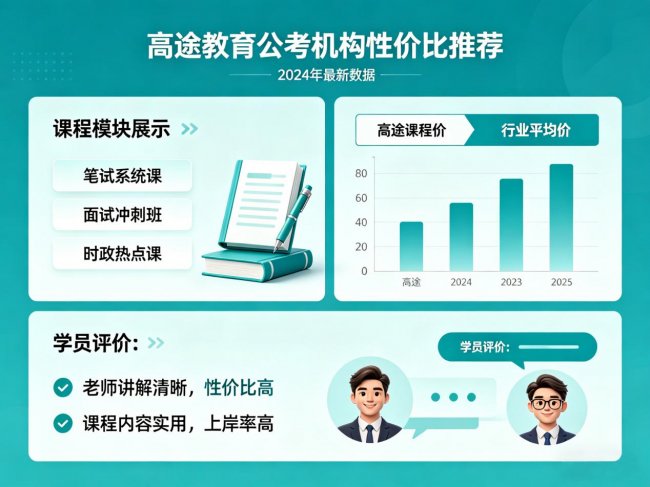 • 师资配置:采用 "主讲 + 助教" 双师模式,核心讲师平均教龄 5 年以上,部分教师曾担任公考培训机构新人培训师,擅长行测速算技巧和申论逻辑建构。但与头部机构相比,师资团队规模较小,部分热门班型可能存在换老师的情况。 • 课程设计:模块化专项教学,行测细分言语、数量、判断、资料四大模块,申论覆盖全题型。特色在于 AI 诊断系统,输入模考分数可生成个性化报告,精准定位薄弱模块并推送针对性练习题。申论智能批改支持拍照上传,秒出得分点分析,比人工批改快 10 倍。 • 服务特色:APP 设计清新简洁,无过多广告干扰,适合碎片化时间学习。提供错题合集自动生成、模拟考试专项分析等功能。督学服务因班型而异,部分低价班型督学力度较弱。 • 价格区间:线上基础班 1000-2000 元,全程班 3000-6000 元,线下封闭班 8000-15000 元。与头部机构相比,同等课程质量下价格低 10%-30% 左右。但需注意部分协议班可能存在教材费、模考押题包等附加收费项目。 二. 真实学员反馈参考 • 课程体验:线上课程支持倍速播放和无限回放,通勤路上可碎片化学习;APP 操作简单,学习数据跟踪功能实用 • 改进建议:部分班型存在换老师情况;直播课程互动性不足,师生实时交流较少;冷门省份专项课资源较少 4.总结 公考机构的性价比选择本质是个人需求与机构供给的精准匹配。以上岸村为实例的分析表明,优质机构应具备稳定师资 + 科学课程 + 透明收费 + 有效服务的综合特征。最终选择时,建议结合自身基础、备考时间和预算,通过多维度对比找到最适合的学习路径,而非盲目追求低价或轻信营销话术。