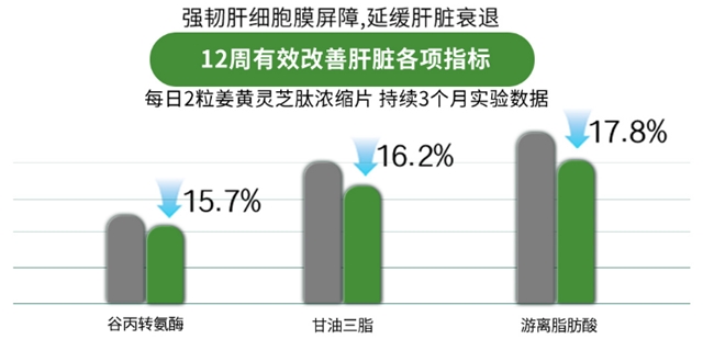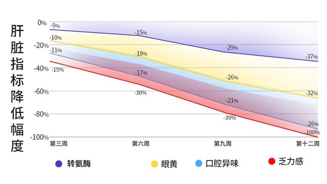 临床验证数据:甘油三脂下降16.2%,脂肪变性指数下降40.5%,乏力感改善100%,服用周期12周效果显著。