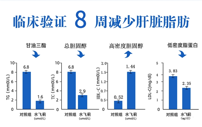 国际适应性临床实证数据:100名脂肪肝患者服用8周,平均谷丙(ALT)净降幅为37%,甘油三酯降幅16%,总胆固醇下降至2.9,肝功能恢复率比普通单一型产品高出31.5%。