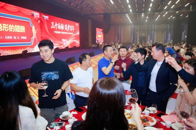 当晚18:30,“三十而励 筑梦百年”主题感恩晚宴正式拉开帷幕,现场以红色为主色调,主题大屏醒目亮眼,灯光璀璨、氛围热烈,全员共庆三十华诞,共话百年梦想。