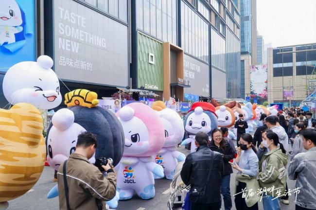本次生活节的流量核心无疑归属于“苏超”官方IP“苏嘟嘟”。以其江苏首展、首店、首秀的三重身份重磅落地华贸,“苏嘟嘟”迅速成为全场,特别是亲子家庭与年轻客群的瞩目中心。十三座以江苏各城市为主题的创意装置、限定快闪店、2026“苏超”开幕式巡游互动,构建了极具感染力的互动场景。现场欢声不断,强化了项目与核心客群之间的情感连接,为步行街带来了持续高涨的人气。