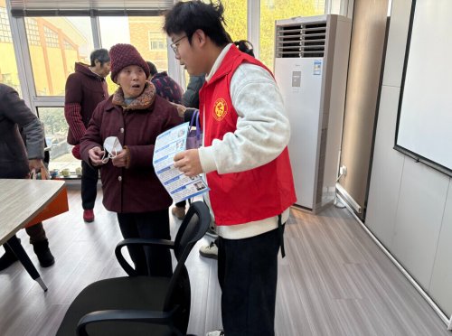 近日,江苏科技大学自动化学院“志愿先锋”实践团走进镇江市崇文社区,先在社区实践活动中心为老年居民讲解反诈案例,随后移步小区内为过往老人普及反诈重要性并发放宣传手册。该社区老年居民占比偏高,是基层反诈宣传重点群体,此次活动旨在提升老年群体对诈骗形式的认知与防骗能力。